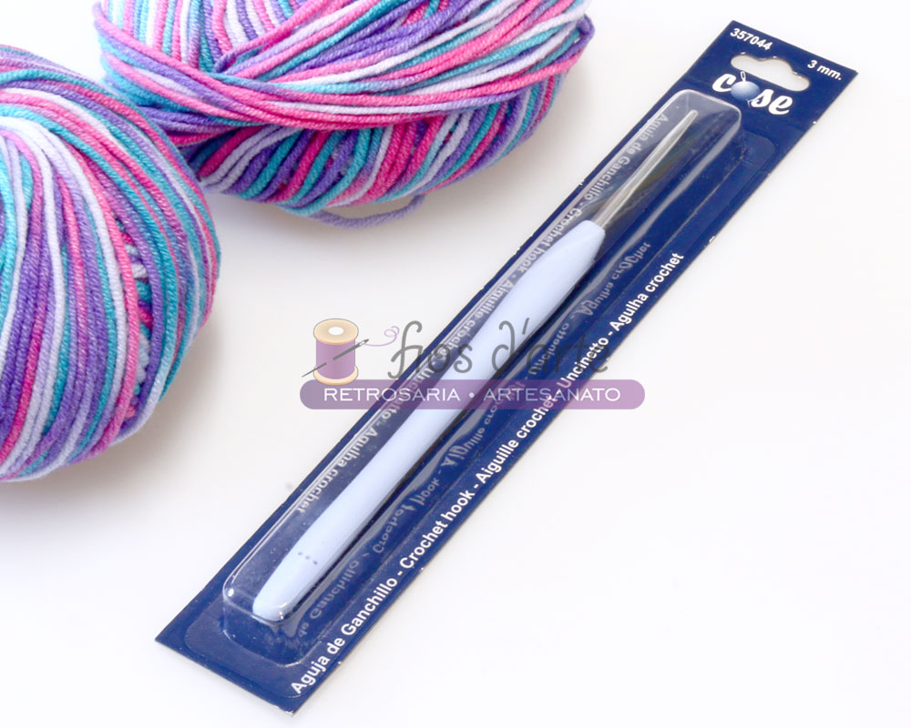 Desenho ergonómico que permite fazer crochet com menos cansaço. Ponta que desliza bem em combinação com um suporte para a mão com aderência.