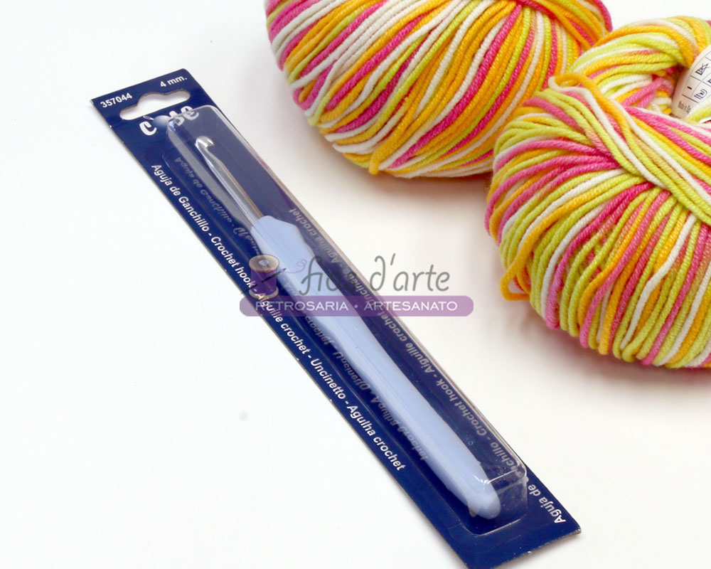 Desenho ergonómico que permite fazer crochet com menos cansaço. Ponta que desliza bem em combinação com um suporte para a mão com aderência.