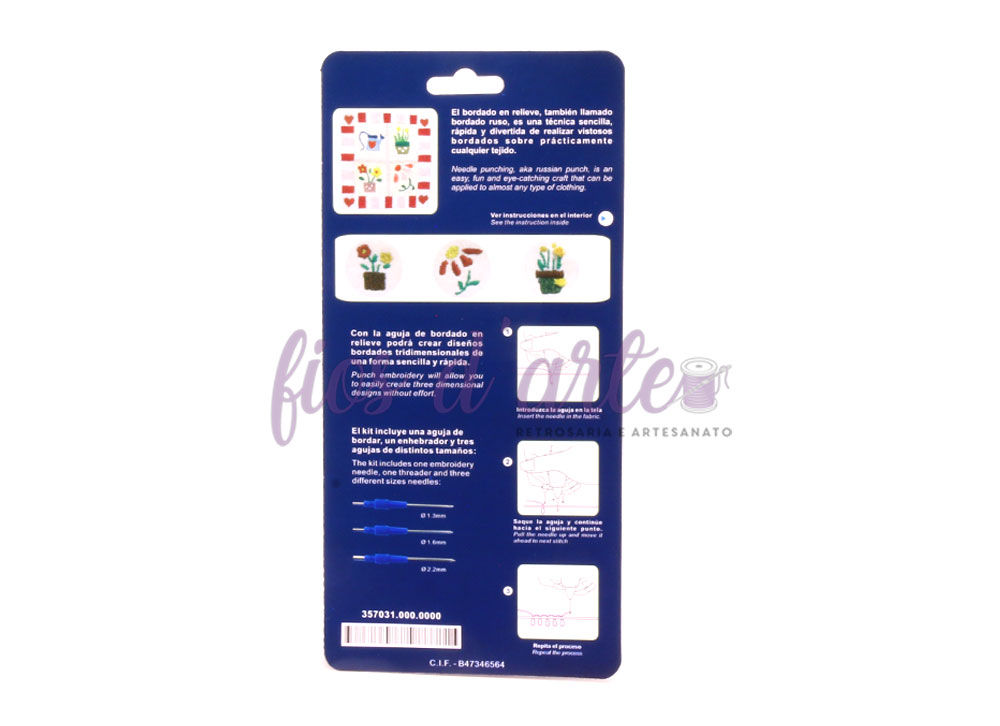 - Esta agulha mágica permite bordar em relevo, ponto também conhecido por ponto russo;