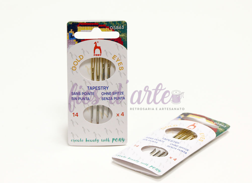 Agulhas de bordar sem ponta (cabeça dourada) Embalagem com 4 unidades Tamanho: 14