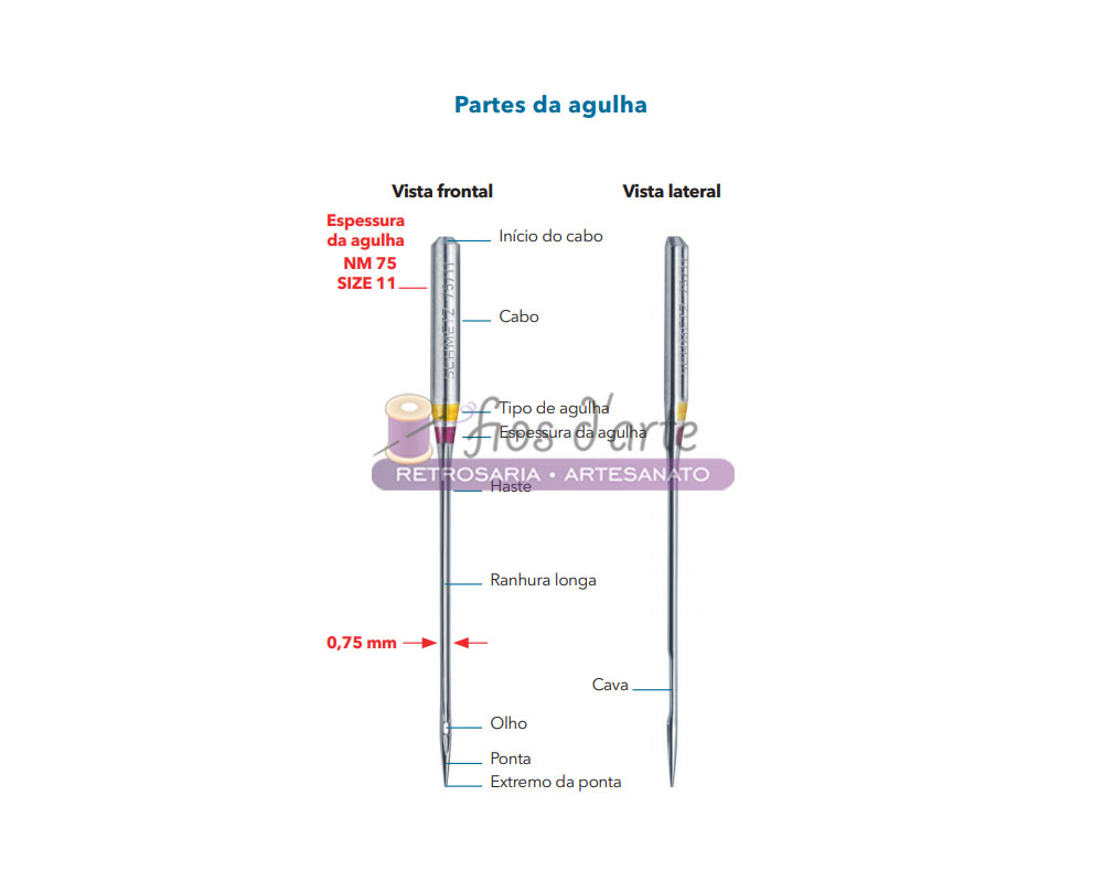 - Quanto mais alta for a referência do tamanho mais grossa é a agulha;