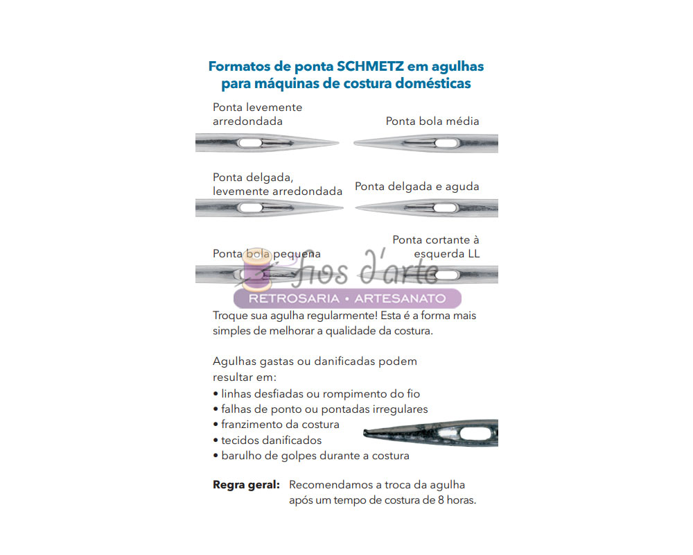 Tamanhos: 80/12, 100/16, 110/18 e Sortido (2 unid 70, 2 unid 80, 1 unid 90)
