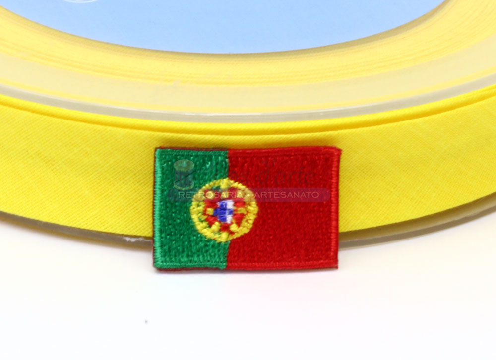 Aplicação termocolante bordada Bandeira Portugal Tamanho: 2,9x1,9cms Composição: 70% Poliester 30% Rayon