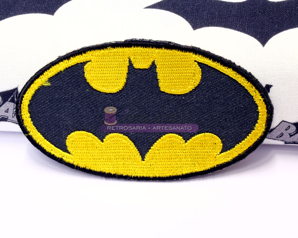 Aplicação termocolante Batman Tamanho: 8x4,5cms Composição: 70% Poliester 30% Rayon