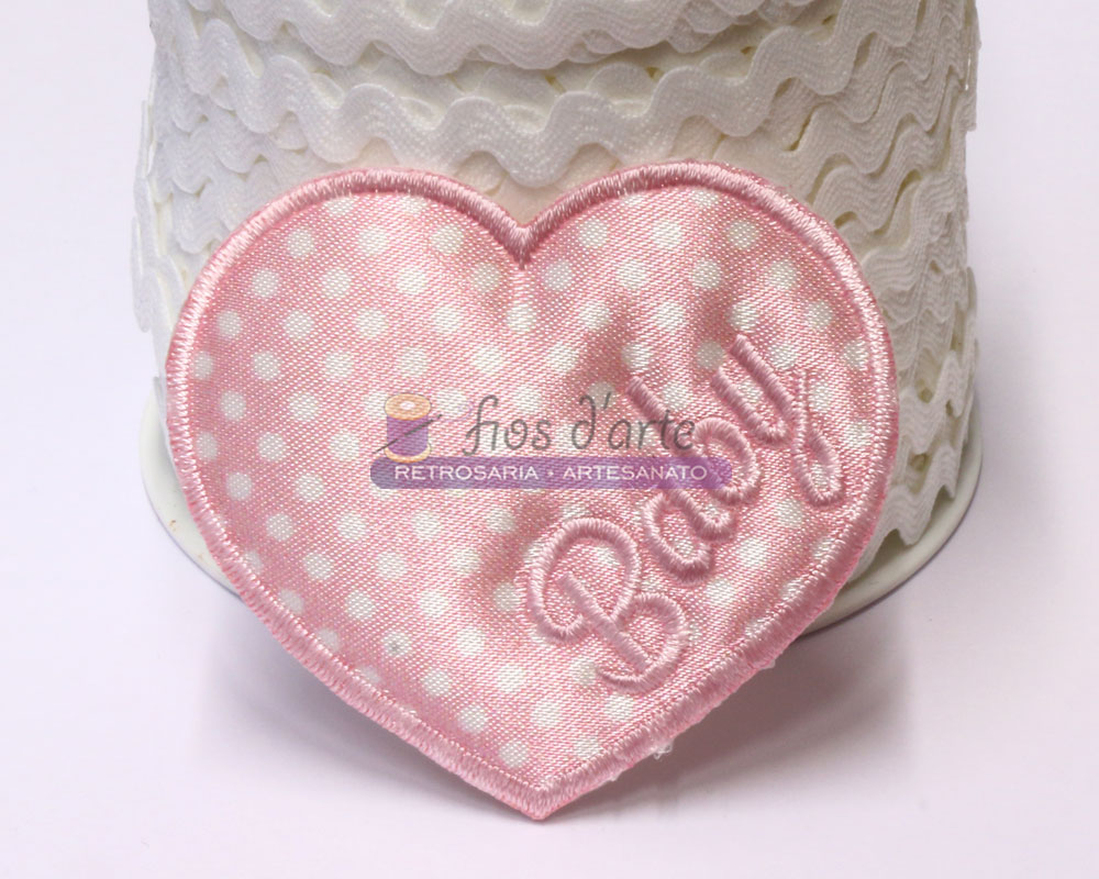 Aplicação termocolante Coração Baby rosa (5,7x5,3cms)