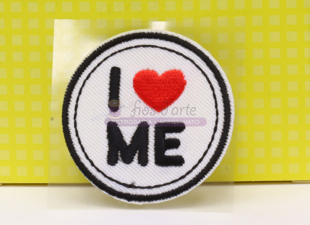 Aplicação termocolante redonda I ❤️ME bordada Composição: 70% Poliester 30% Rayon Tamanho: 5cms