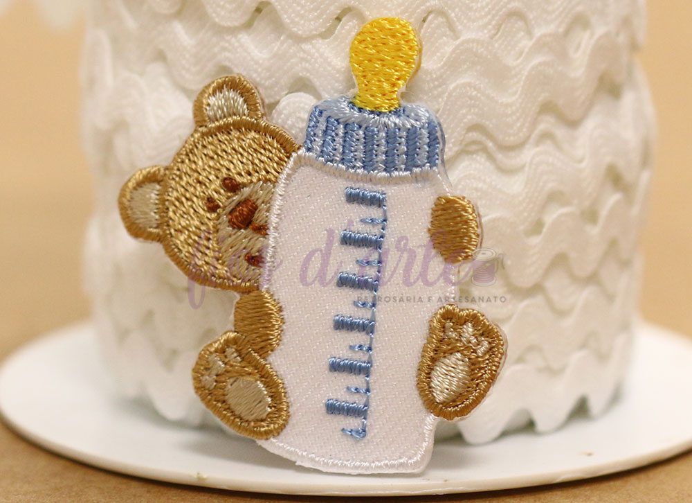 Aplicação termocolante Ursinho com biberão (3x2,5cms) - azul