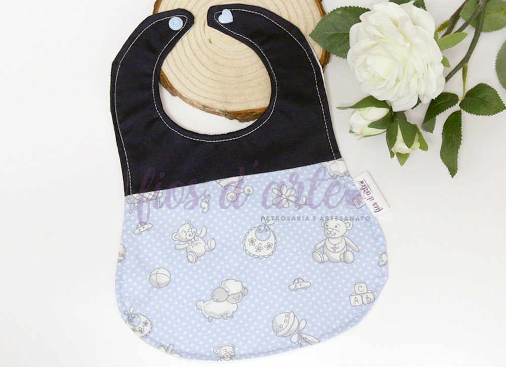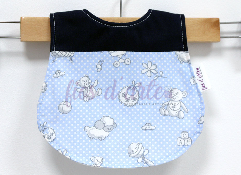 Babete com turco plastificado - Azul bebé estampado e azul escuro (Fios d'arte)