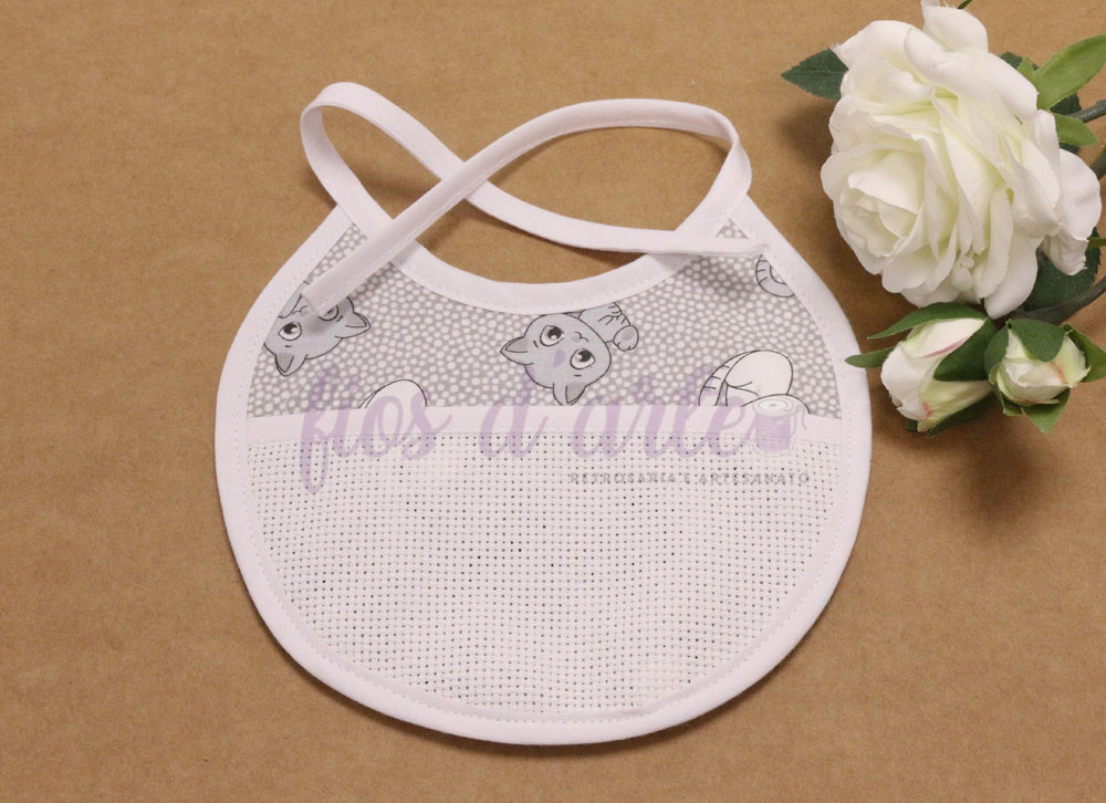 Babete redonda com turco para bordar ponto cruz - Gatinhos (Fios d'arte)