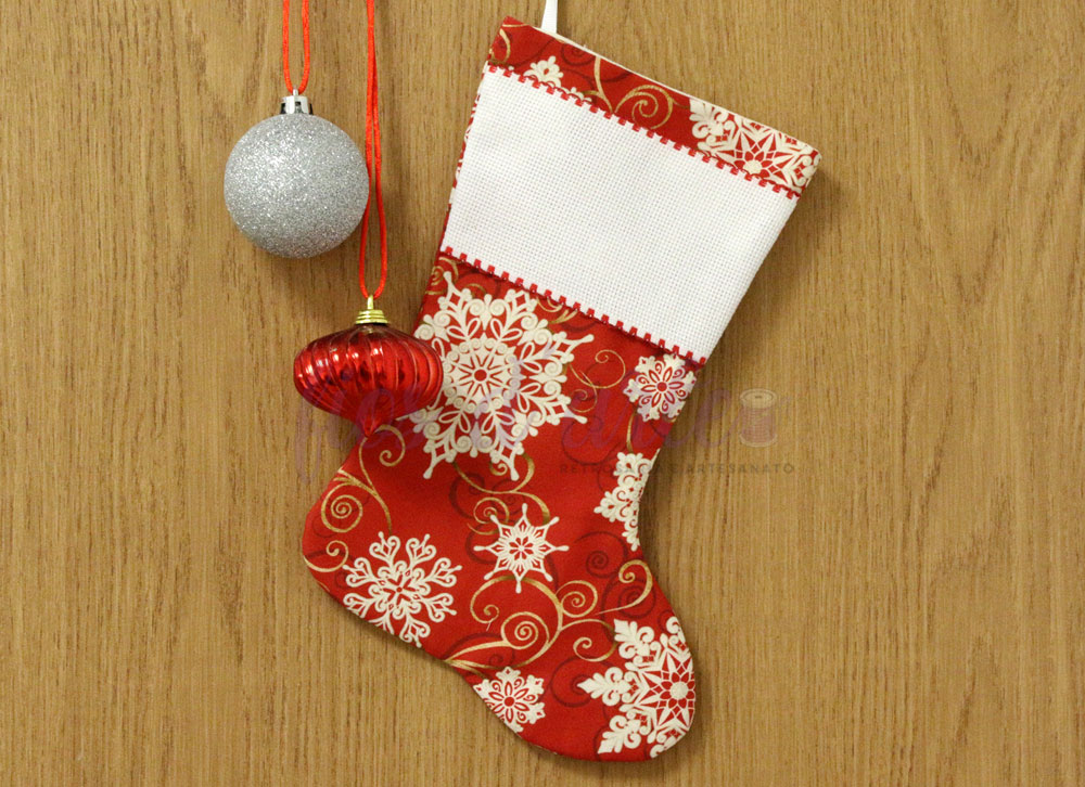 Bota/ Meia de Natal em tecido para bordar ponto cruz #102 (Fios d'arte)