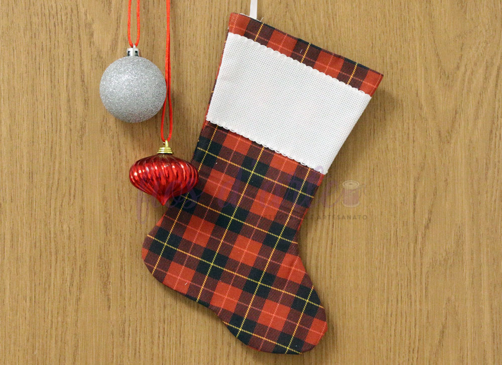 Bota/ Meia de Natal em tecido para bordar ponto cruz #105 (Fios d'arte)
