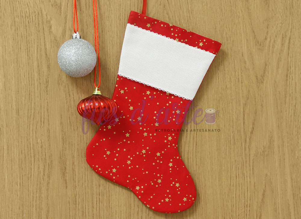 Bota/ Meia de Natal em tecido para bordar ponto cruz #110 (Fios d'arte)