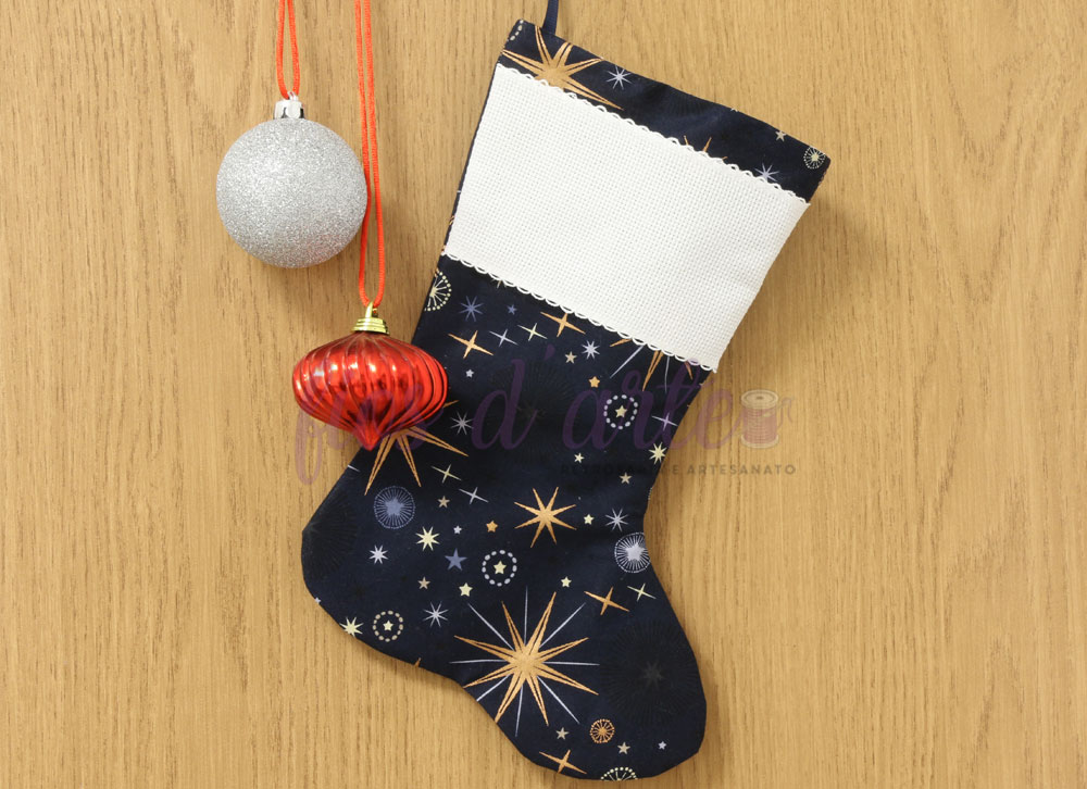 Bota/ Meia de Natal em tecido para bordar ponto cruz #111 (Fios d'arte)