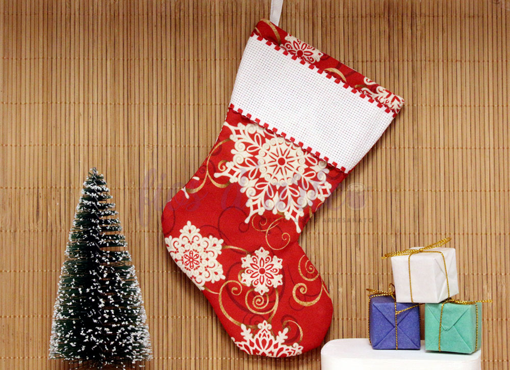 Bota/ Meia de Natal em tecido para bordar ponto cruz #15 (Fios d'arte)