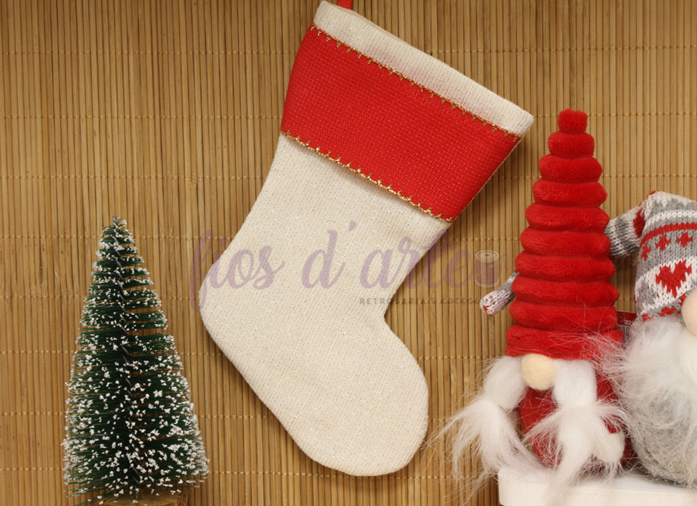 Bota/ Meia de Natal em tecido para bordar ponto cruz #19 (Fios d'arte)