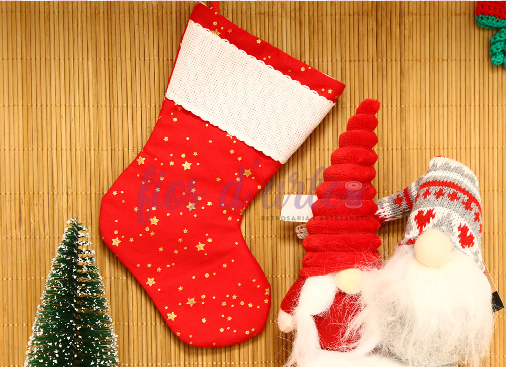 Bota/ Meia de Natal em tecido para bordar ponto cruz #07 (Fios d'arte)