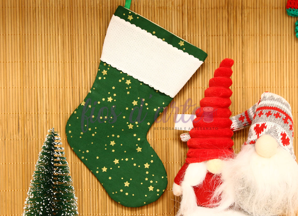 Bota/ Meia de Natal em tecido para bordar ponto cruz #08 (Fios d'arte)
