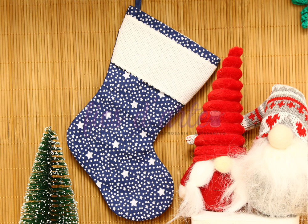 Bota/ Meia de Natal em tecido para bordar ponto cruz #10 (Fios d'arte)