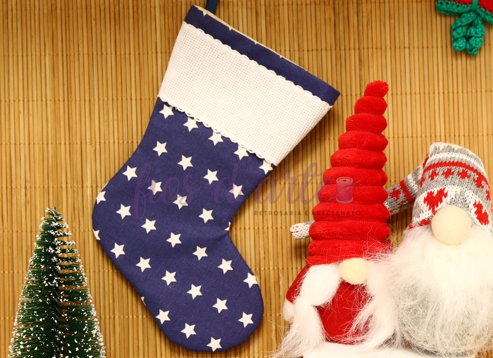 Bota/ Meia de Natal em tecido para bordar ponto cruz #12 (Fios d'arte)