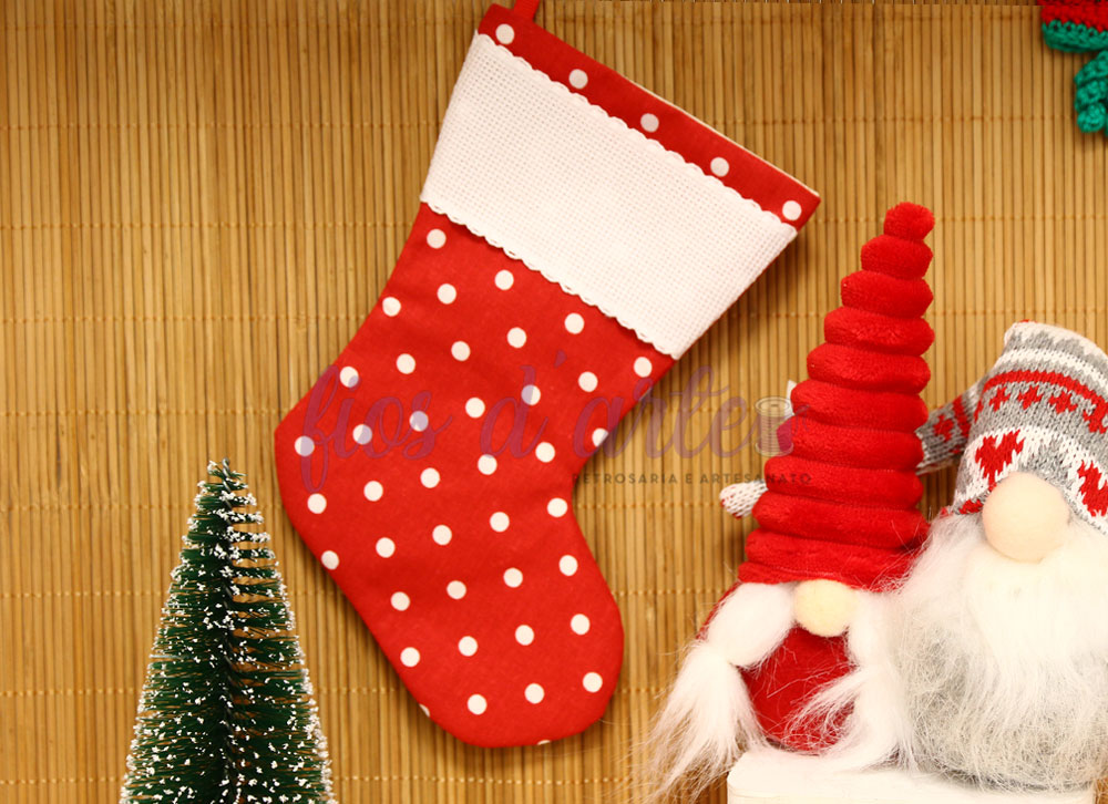 Bota/ Meia de Natal em tecido para bordar ponto cruz #14 (Fios d'arte)