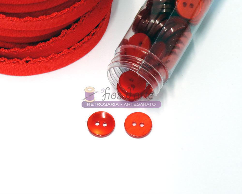 Botão redondo 2 furos Tamanho: 12mm Cores disponíveis: amarelo, cinzento, preto, rosa velho e vermelho.