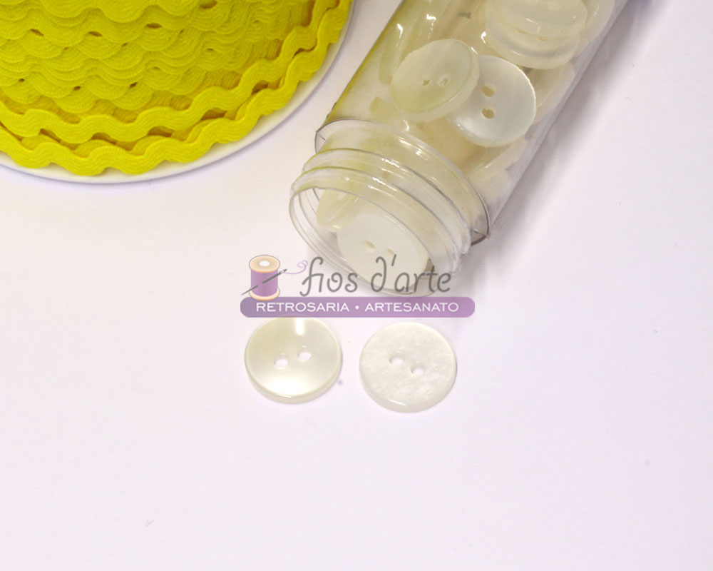 Botão redondo 2 furos Tamanho: 14mm Cor: amarelo, cinzento, natural, preto, rosa velho e vermelho