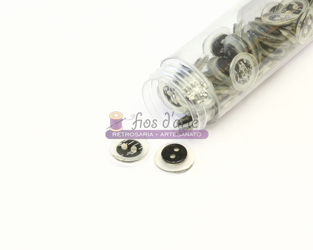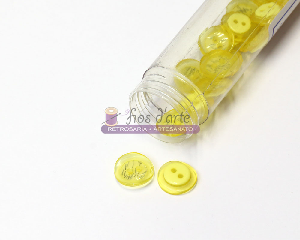 Botão Redondo Brilhante Tamanho: 12mm Cores: amarelo, azul bebé, branco, cinzento, coral, preto, rosa, vermelho e violeta claro. Ideal para colocar num casaco ou numa camisola de um criança/ adulto