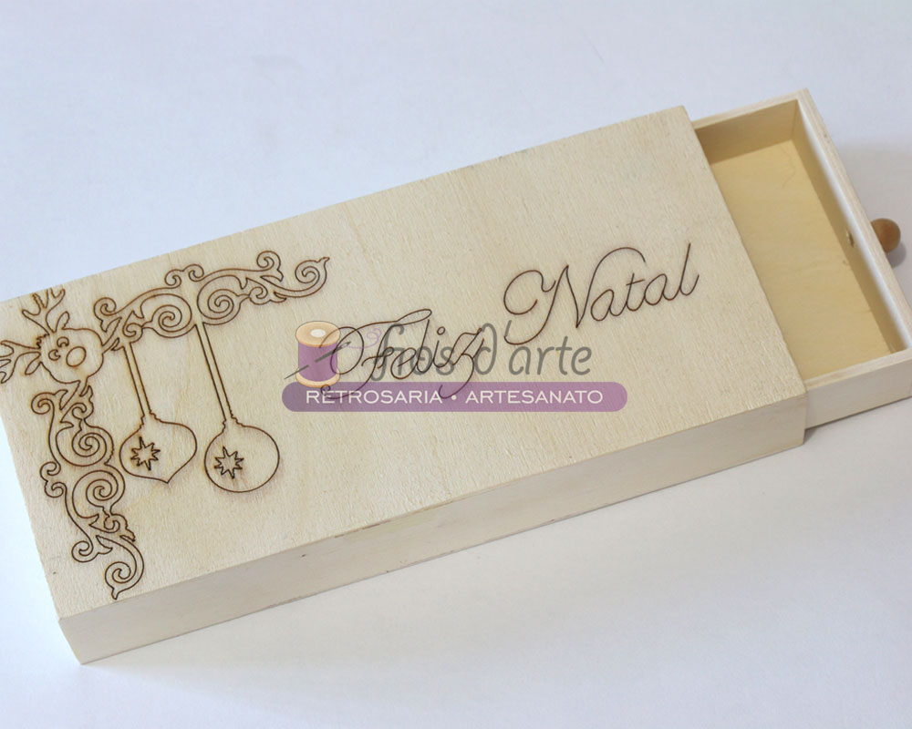 Caixa com gravação Feliz Natal e gaveta (19x9x3cms)