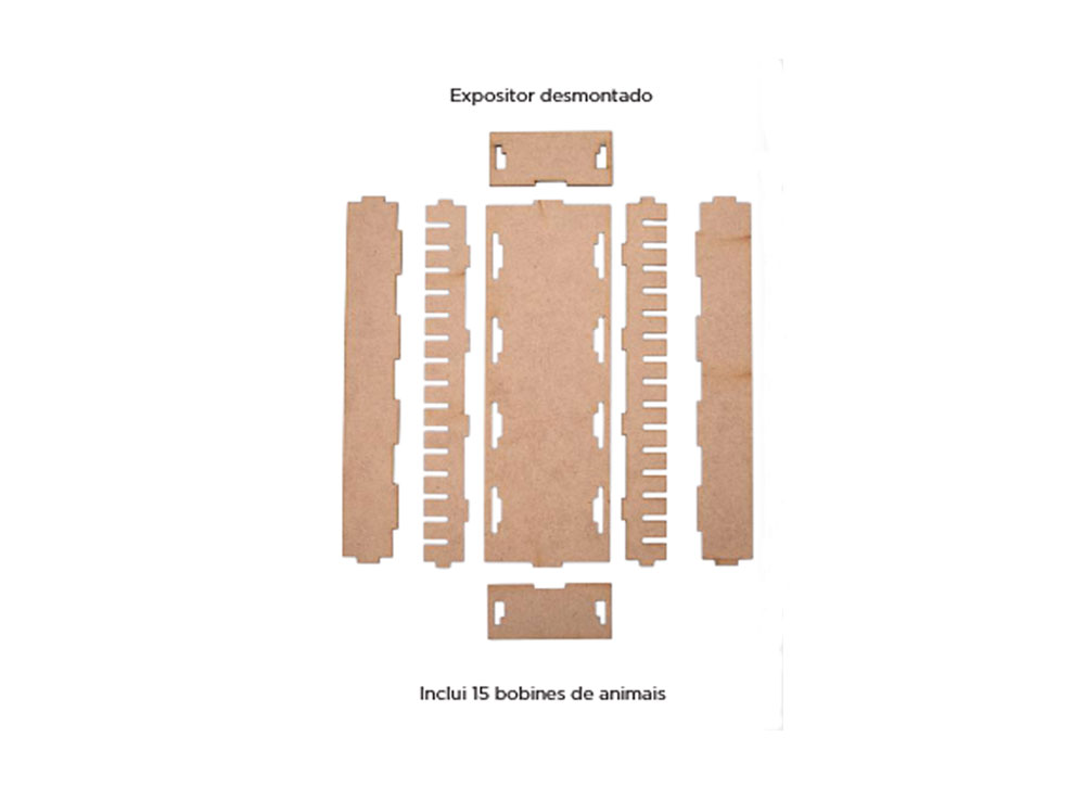 O conjunto inclui a caixa e 15 bobines em forma de ovelha.