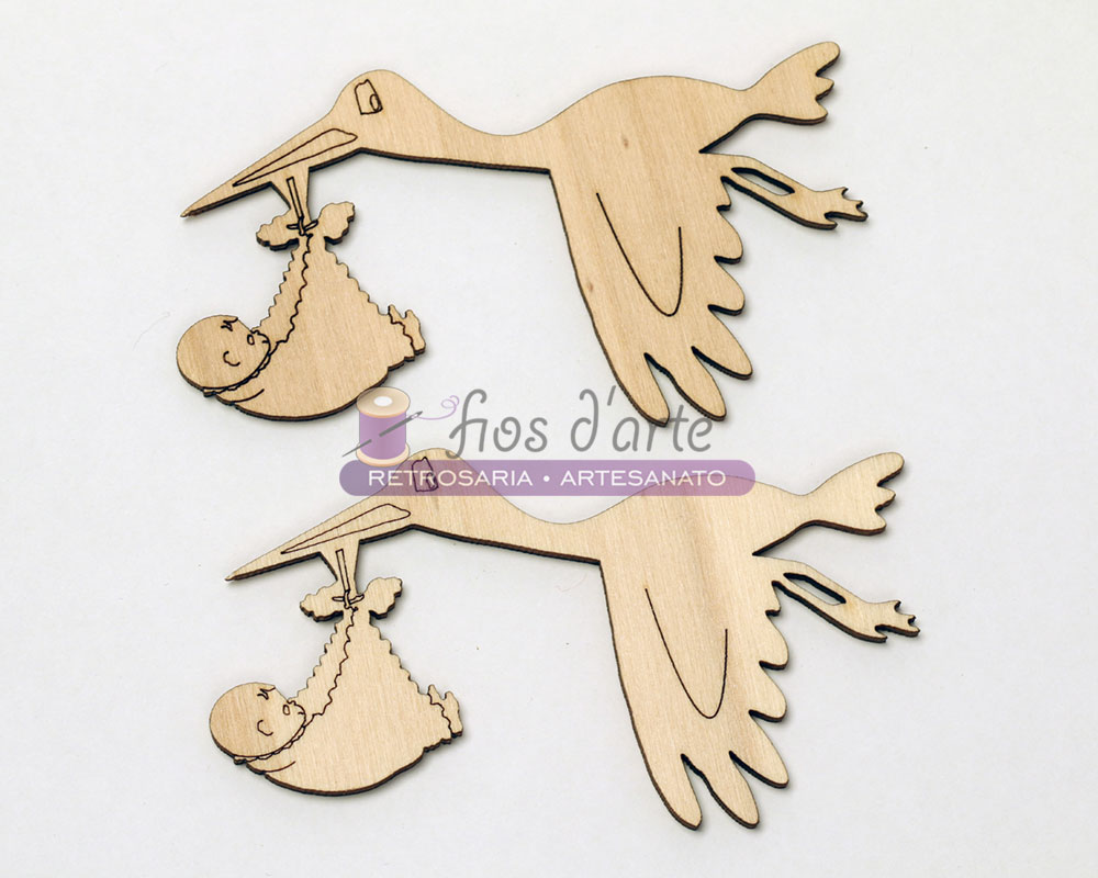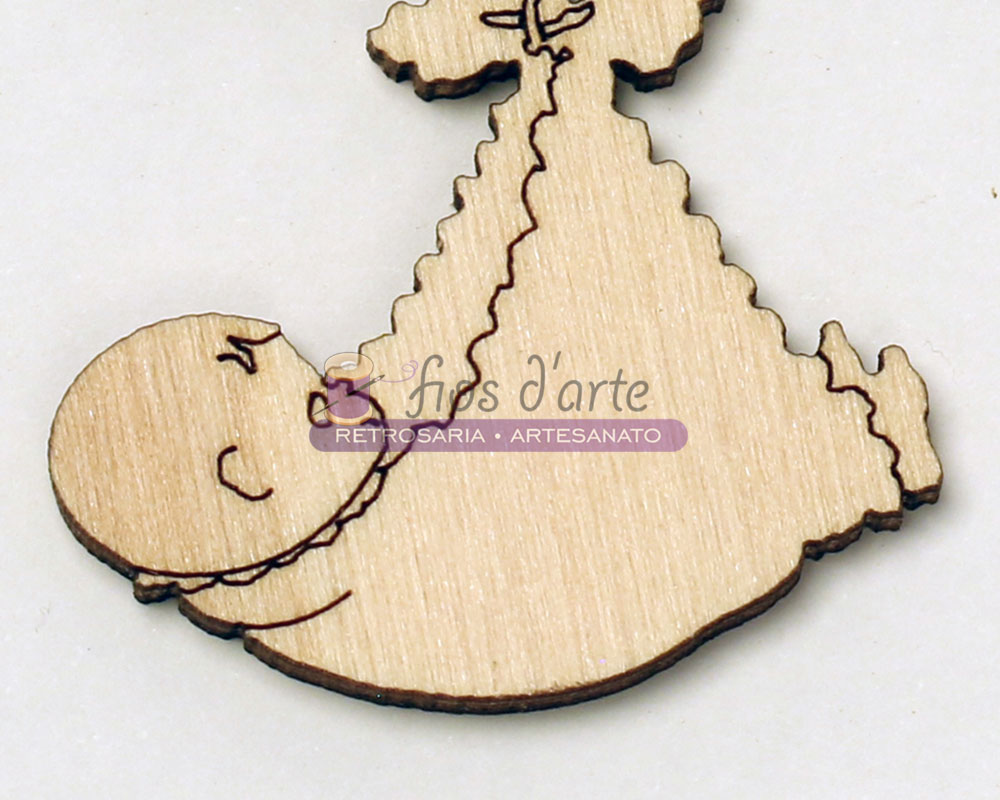 Cegonha com bebé Sem tratamento Material: MDF Tamanho: 9,7x6,5cms