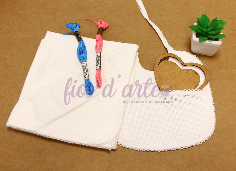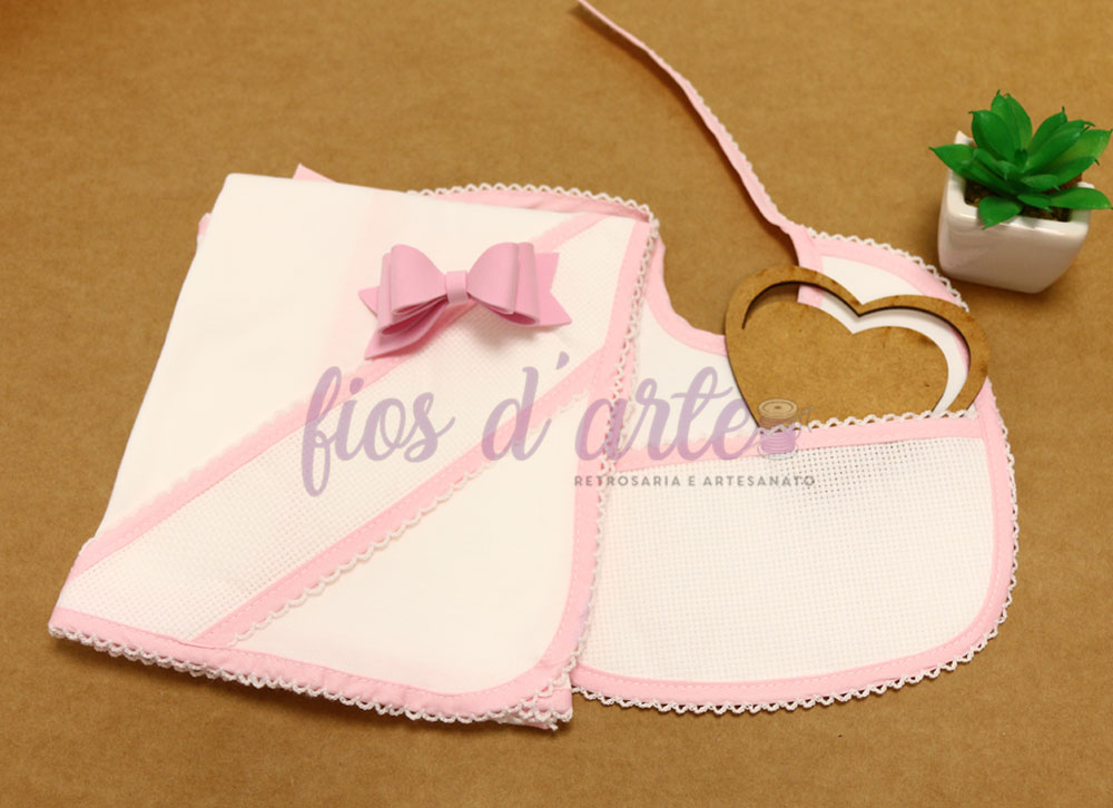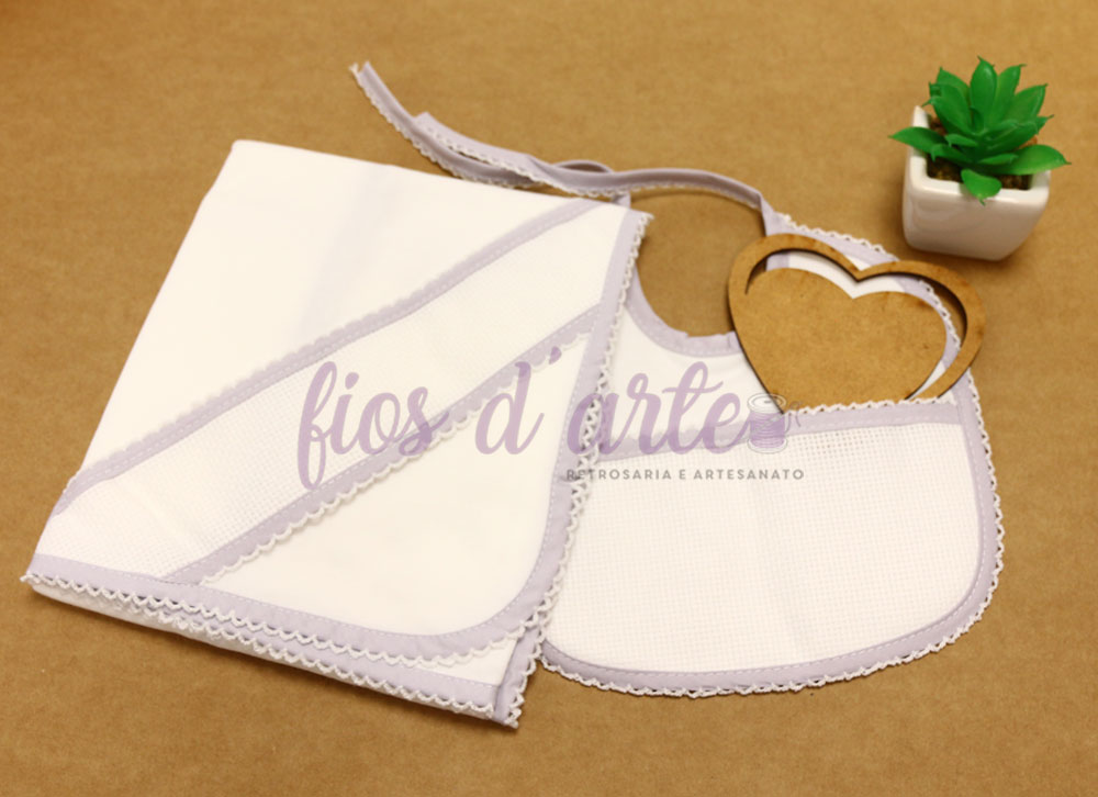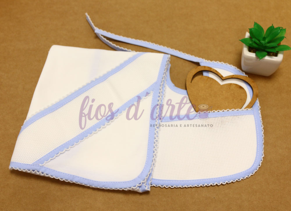 Tamanho: fralda - 60cmx60cm aprx, babete - 18x18cms