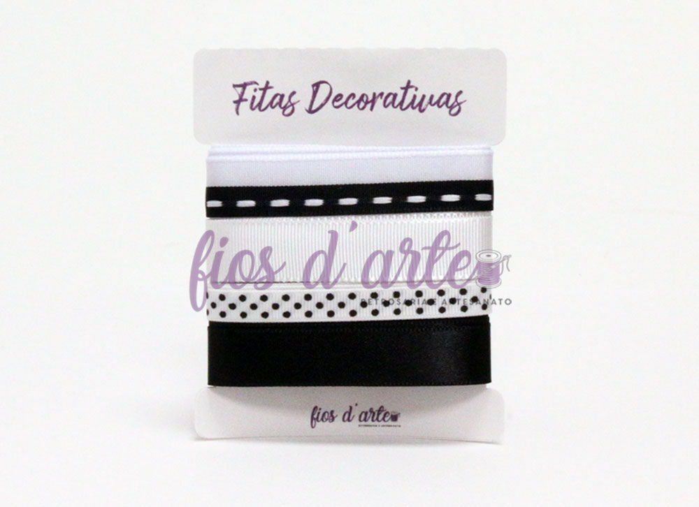 - 1 mt fita gorgurão branca com pintas pretas 10mm