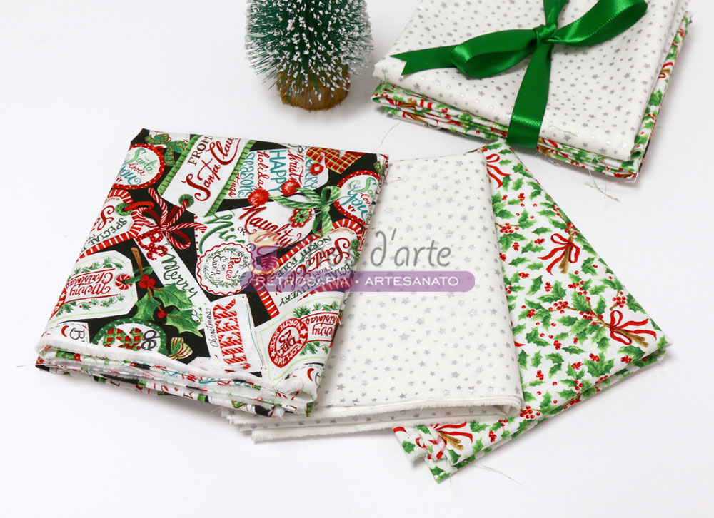 Conjunto de tecidos Natal #03 Tamanho: 50x55cms/cada (conjunto de 3 tecidos) Composição: 100% algodão Tema: Natal