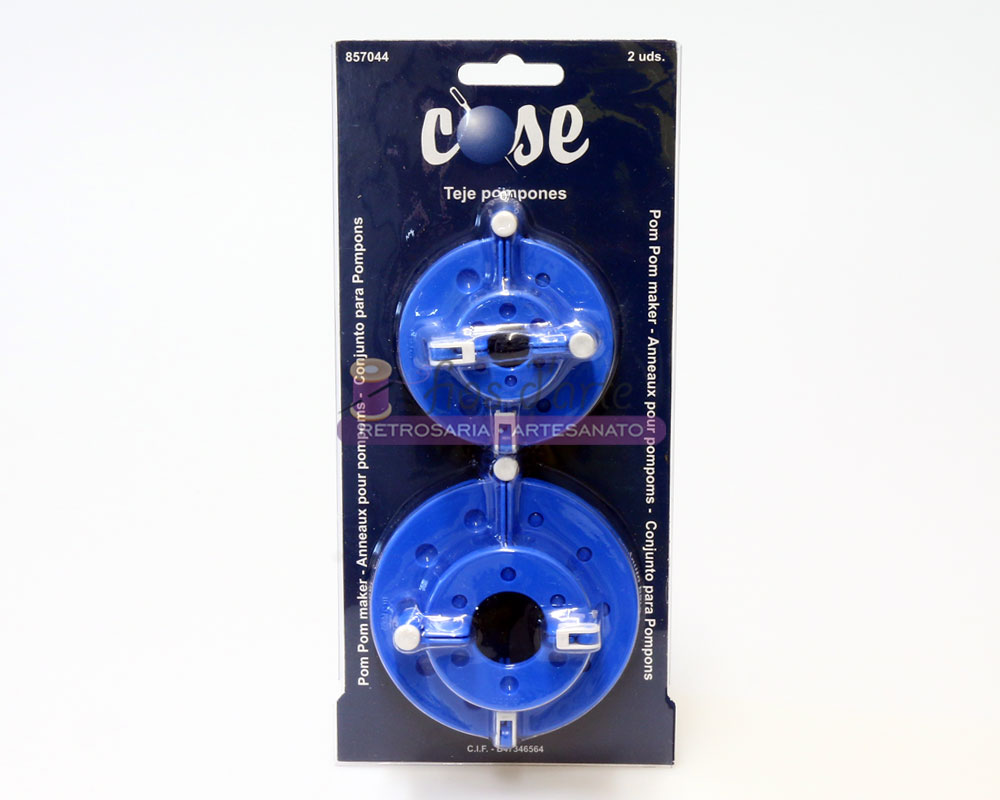 Conjunto para fazer pompons Embalagem com 4 aros para fazer pompons de diferentes tamanhos: 3,5cm, 5,5cm, 7cm e 9cm