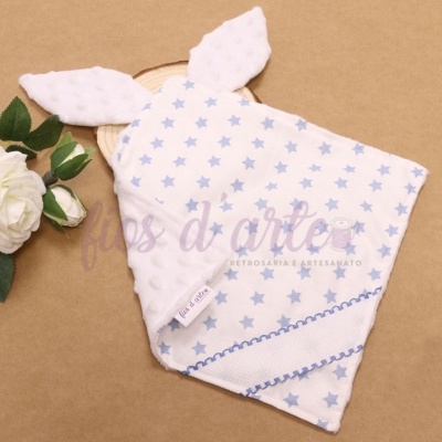 Cor: branco (minky) e branco com estrelas azuis (poliester e algodão)