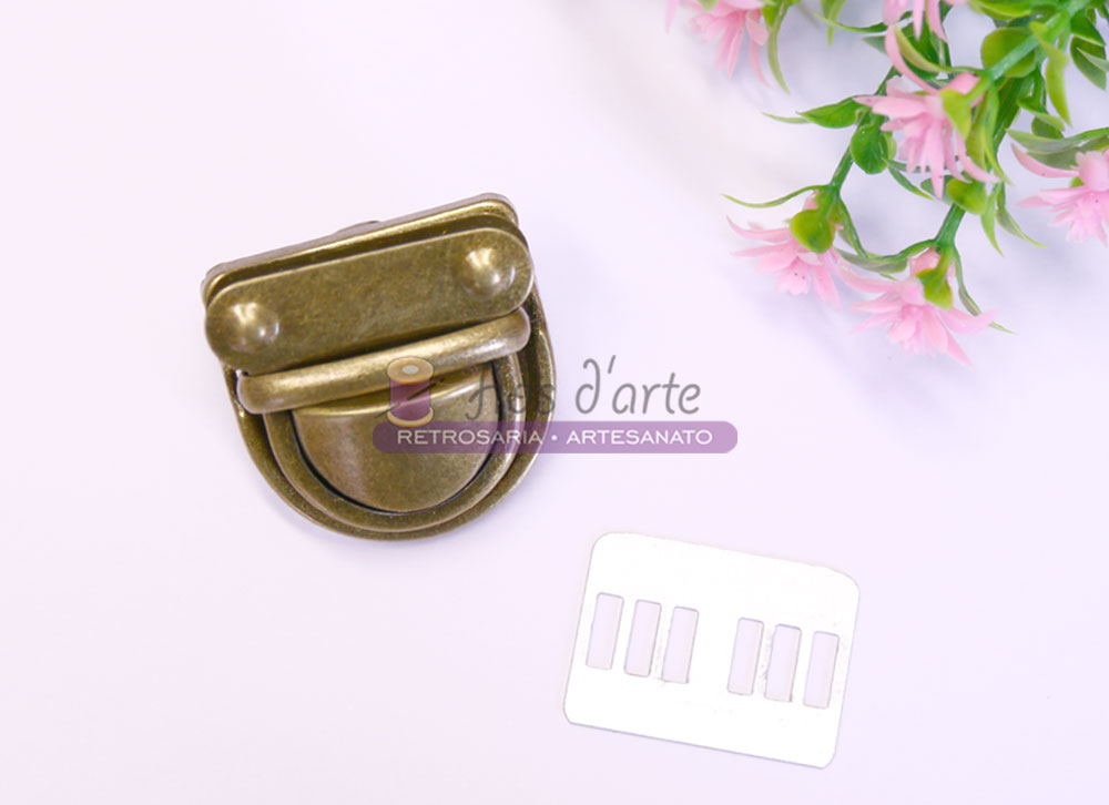 Fecho de encaixe Tamanho: 3x3,5cms Material: metal Cor: Ouro velho
