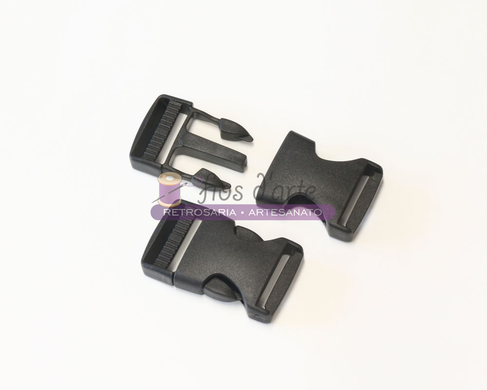 Fecho de encaixe plástico Tamanho: 30mm (para fita de 25mm) Material: plástico Cor: preto