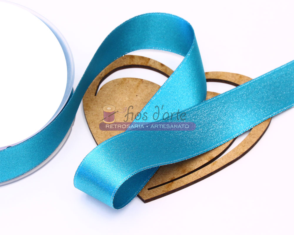 Fita cetim lisa Lurex Largura: 24mm Composição: 100% poliester lurex Cor: azul maldivas com brilho prateado