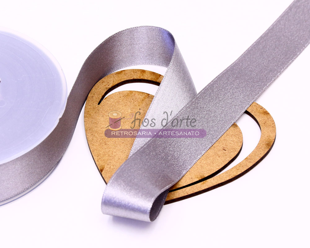 Fita cetim lisa Lurex Largura: 24mm Composição: 100% poliester lurex Cor: cinzento com brilho prateado