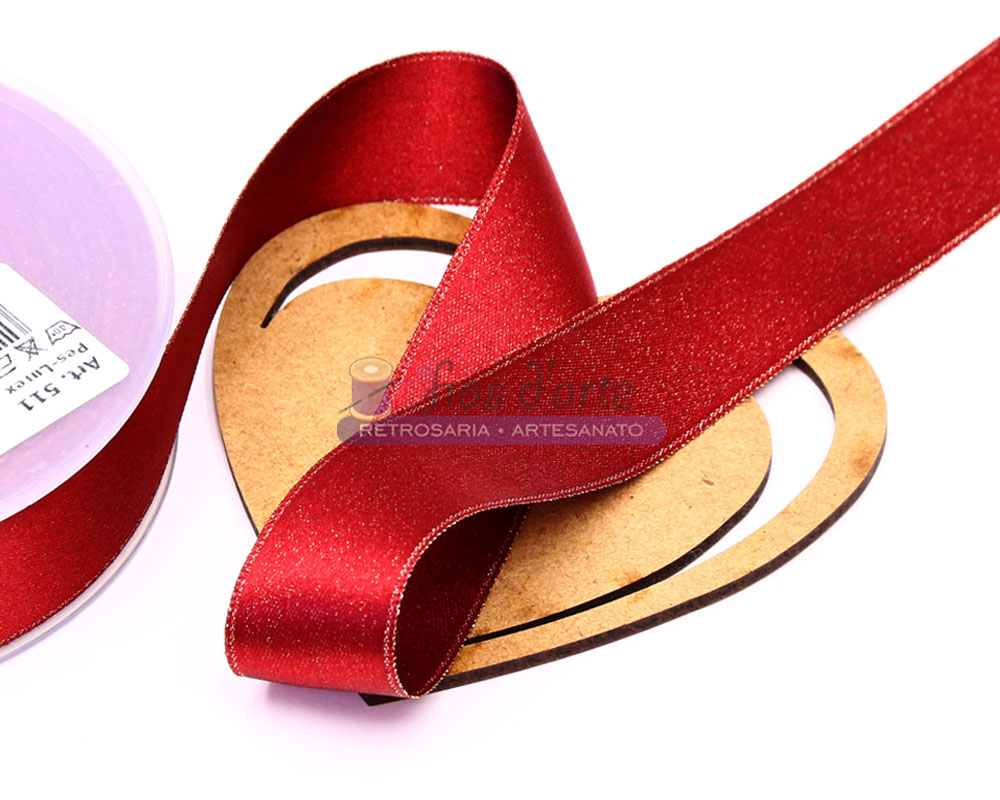Fita cetim lisa Lurex Largura: 24mm Composição: 100% poliester lurex Cor: vermelho com brilho dourado