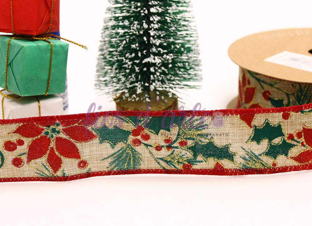 Fita juta aramada Azevinho Composição: 100% poliester Largura: 40mm