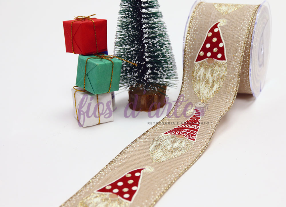 Fita juta aramada Gnomo Composição: 100% poliester Largura: 63mm