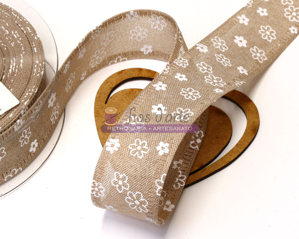 Fita juta estampada Margaridas