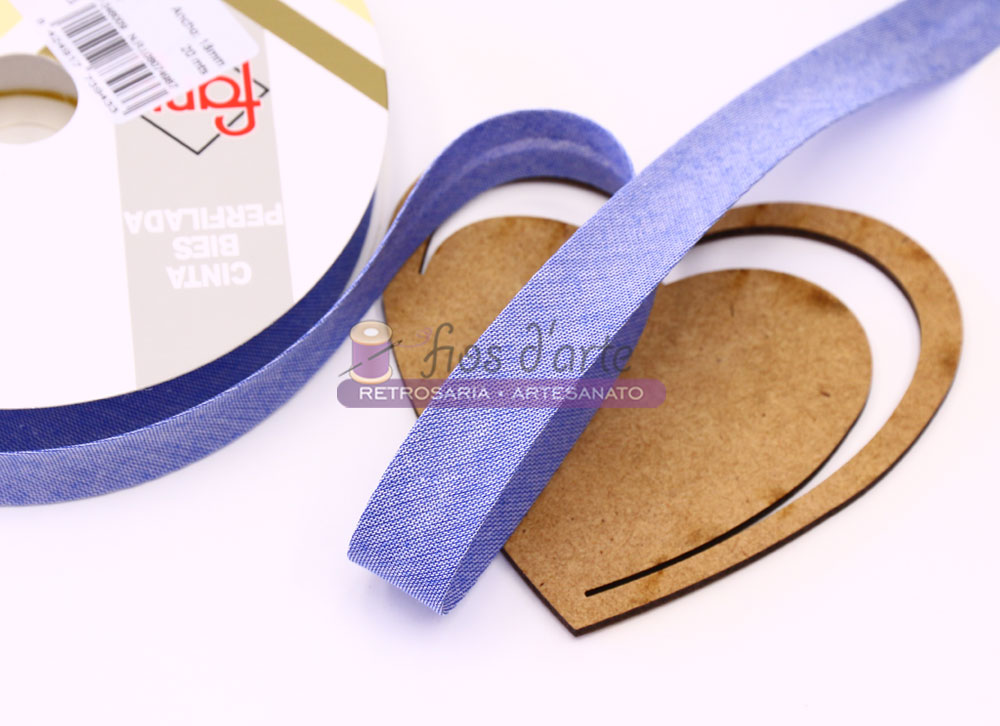 Fita viés ganga Composição: 50% poliester e 50% algodão Largura: 18mm Cor: azul
