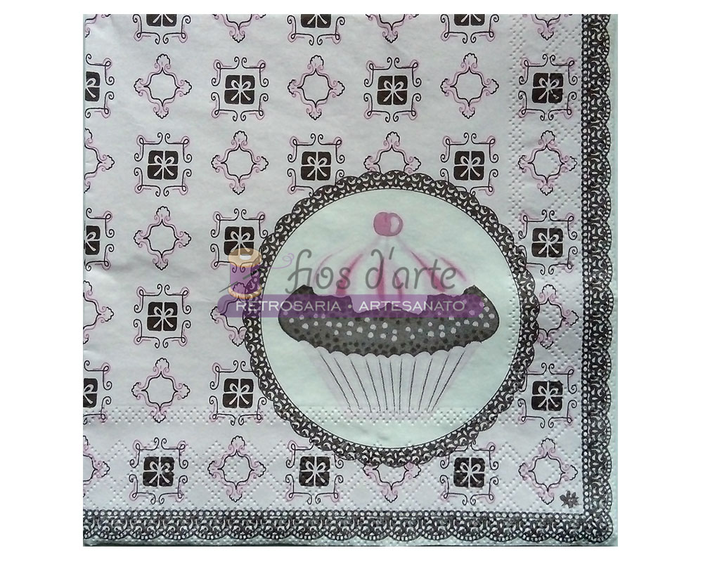 Guardanapo G36.005 A imagem representa uma das faces do guardanapo e tem um cupcake Tamanho: 33x33