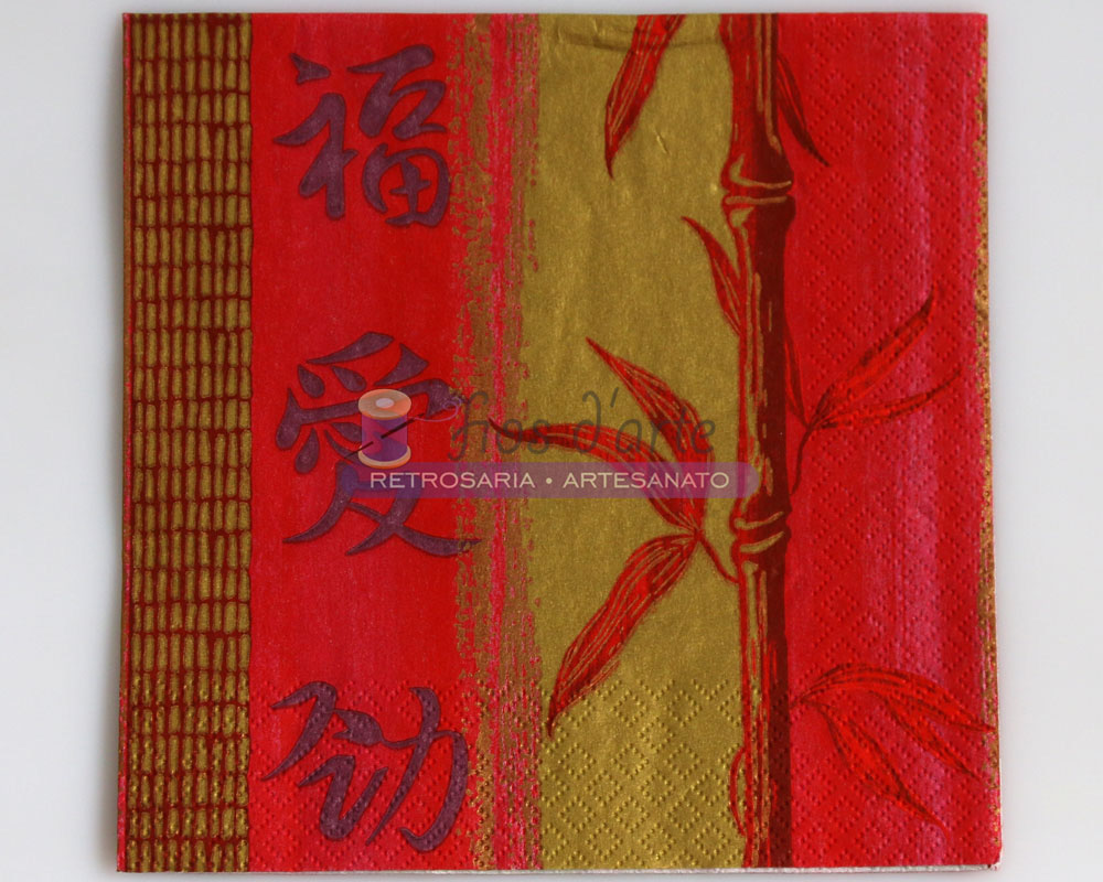 Guardanapo G36.006 A imagem representa uma das faces do guardanapo e o tema é oriental Tamanho: 33x33