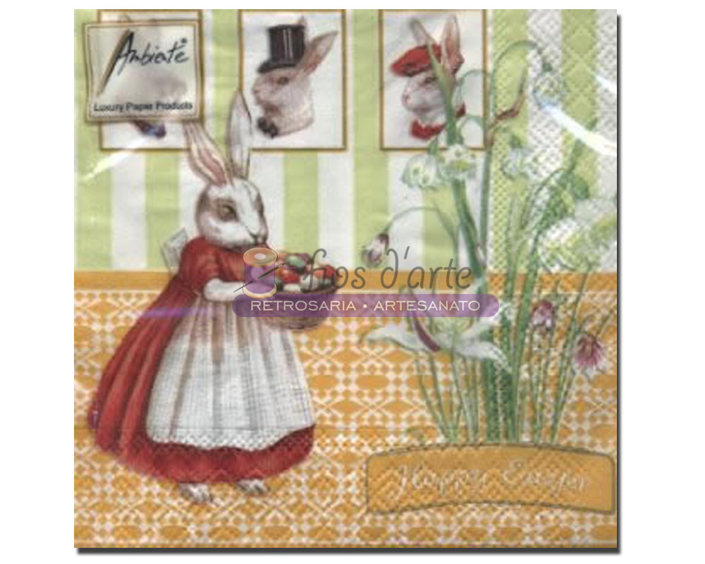 Guardanapo G36.030 Tamanho: 33x33 A imagem representa uma das faces do guardanapo e tem como tema a Páscoa