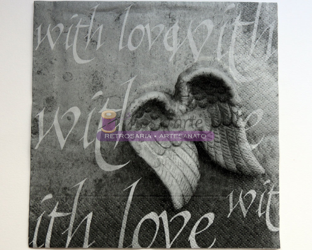 Guardanapo G36.042 A imagem representa uma das face do guardanapo em tons cinzentos com asas de anjo Tamanho: 33x33