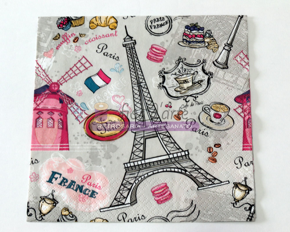 Guardanapo G36.063 As imagens representam duas das faces do guardanapo e tem como tema Paris Tamanho: 33x33cm