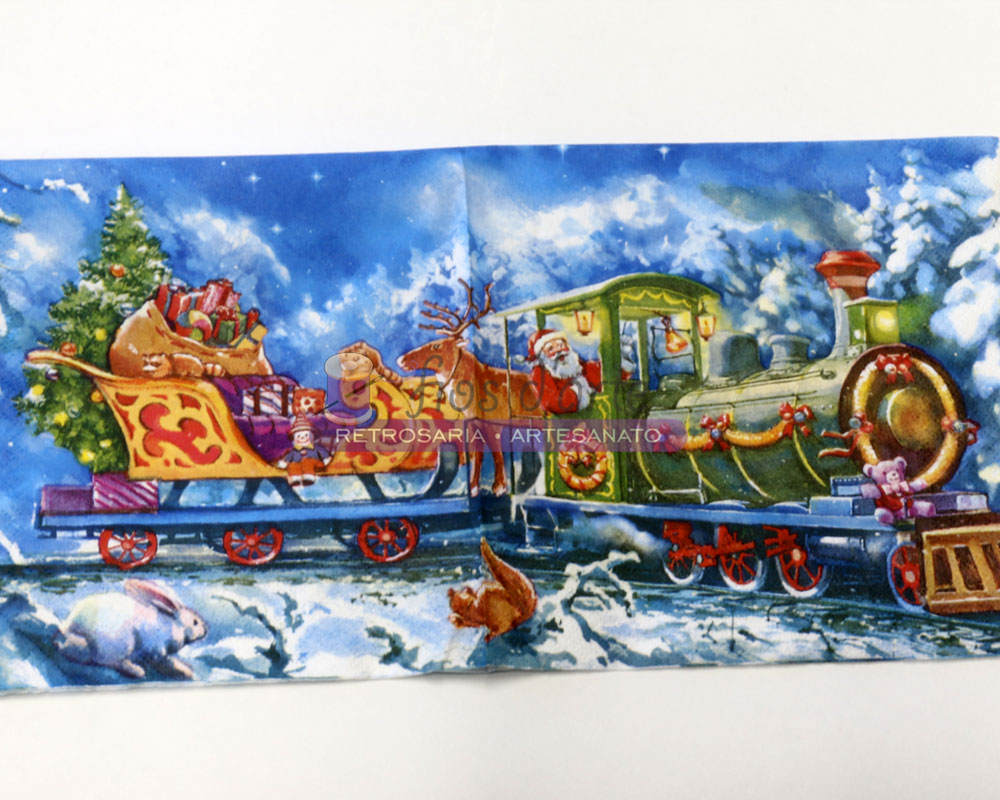 Guardanapo G36.065 Tamanho: 33x33cm A imagem representa duas das faces do guardanapo e tem como tema Natal.